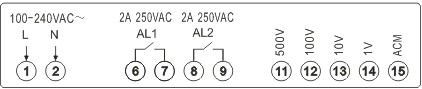 直流電壓DCV   500V  -100~500V ?-? 報警輸出   繼電器輸出, 觸點容量為2A/250VAC/30VDC(阻性負載)