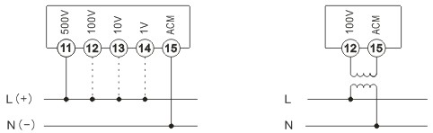 交(直)流電壓≤500V時直接接入                         交流電壓>500V時經互感器接入